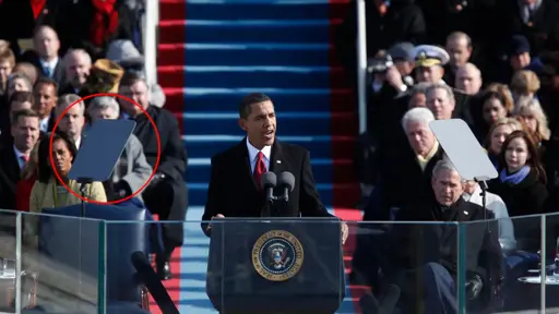 Also, they have a secondary use to project text for the president to read. But that only came up after Obama came up with idea. „Hey guys, why don’t you project the text I need to read somewhere in the wall, so I don’t have to use a stack of papers?“ - „but isn’t that too far away to read?“ - „ oh, yeah… hey, how about we use that bullet proof glass thingy and project it on there?“ - „seriously? Projecting onto glass? What did they put in your cereal this morning, sir?“