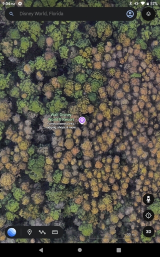 I’d figure that as advanced as technology has become, that Google Earth ought to know the vast size of Disney World and automatically zoom out a bit to show the whole place, not just a random pinpoint out in the sticks.