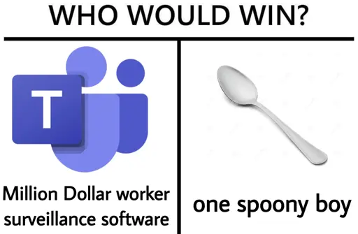 minus-squareExLisper@lemmy.curiana.netlinkfedilinkarrow-up31·3 days agoYour Teams doesn’t come with a spoon? You should contact customer support. Something is seriously wrong with your account.