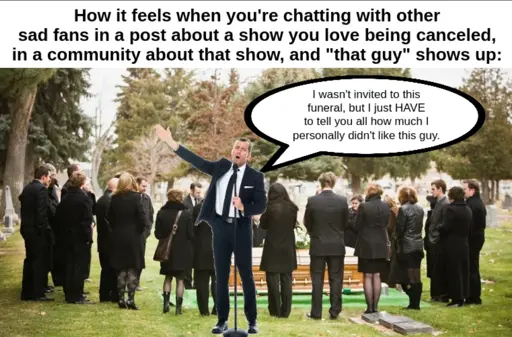 Prime example on how “I can do it” should not be confused with “I should do it”. Because, sure, technically you’re talking about the series, so it isn’t off-topic, and most comms wouldn’t have rules against this (it would screw discussion); but still in poor taste, you know?