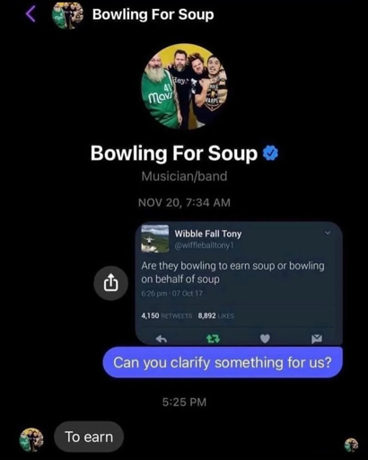 minus-squareKrafty Kactus@sopuli.xyzlinkfedilinkEnglisharrow-up5·4 days agoBowling so the soup doesn’t have to