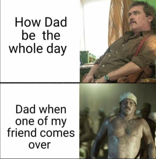 After work, dad would relax shirtless. I had to specifically ask him to put a shirt on when he came to pick me up after club meetings. It looked like he was driving naked, and the other kids made fun of me (and him).