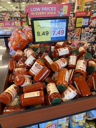 And oddly enough in order to prevent breaking the jars, the employee had to carefully position each jar haphazardly like that.