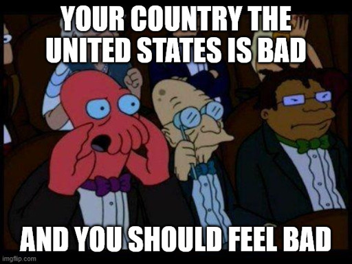 Already do. I get reminded everyday that my country is super evil but there’s not much I can do about it aside from voting which from what I understand this sublemmy doesn’t believe will do anything. So if that’s the case, guess I’m just fucked anyway? No matter what I do, my country will bomb other countries to the ground and its my fault??