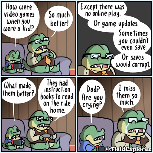 That’s some survivorship bias shit right here. I can’t tell you how many shitty, buggy games I played in the days of early console and PC gaming. Even games that were revolutionary and objectively good games sometimes had game-breaking bugs, but often it was harder to find them without the internet.