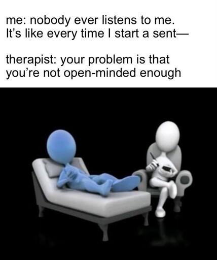 minus-squareSeeMarkFly@lemmy.mllinkfedilinkEnglisharrow-up8arrow-down1·2 days agoI want to open a self-serve psychiatrist’s office. Just a sign on the desk that says “Help yourself”.