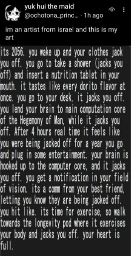 I feel like you have to post “Im an isreal artist” to get around a censor. Either way it’s pretty funny