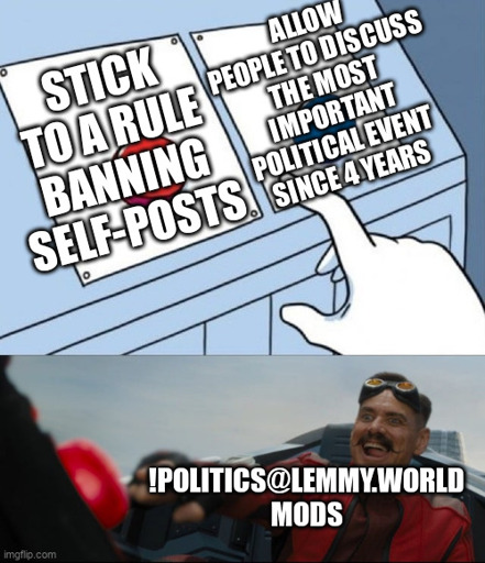Blaze (he/him)@feddit.org to Fediverse memes@feddit.ukEnglish · 1 year ago!politicaldiscussion@lemmy.world as an alternativeplus-squarei.imgflip.comimagemessage-square0linkfedilinkarrow-up11arrow-down10