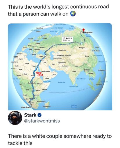 arrow-up11arrow-down1imageThe world longest road feddit.orgGollum@feddit.org to memes@lemmy.world · 1 year agomessage-square0linkfedilink